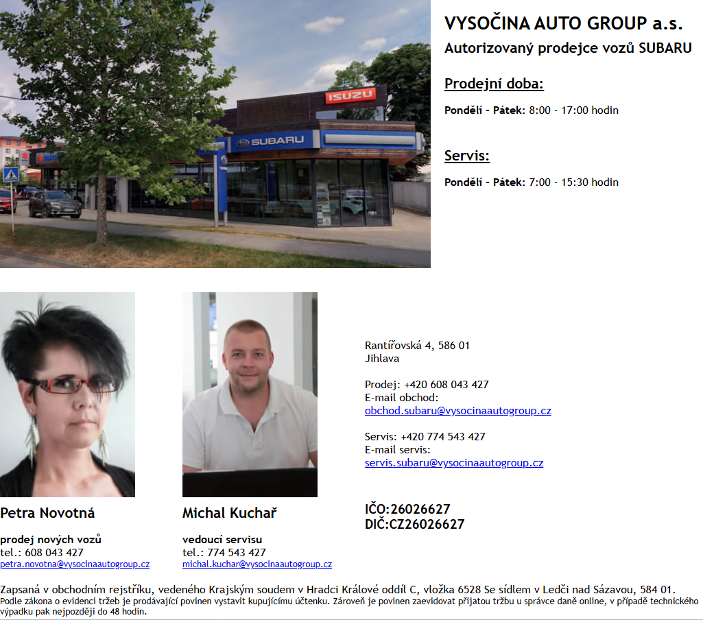 Máte-li zájem o práci u Subaru, ozvěte se nám! Pošlete nám rovnou svůj životopis spolu s motivačním dopisem, a to buď elektronicky na E-mail: info@subaru.cz, nebo poštou: SUBARU ČR, s.r.o., Pekařská 5, 155 00, Praha 5.