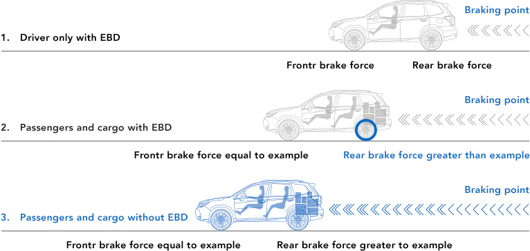Elektronické rozdělování brzdného účinku EBD je systém, který podle situace v optimálním poměru rozděluje brzdnou sílu na kola přední a zadní nápravy. Přední a zadní kola se otáčejí jinou rychlostí v závislosti na způsobu jízdy a hmotnosti vozu. Systém tyto změny detekuje a podle situace rozděluje brzdný výkon na určitá kola s cílem maximálně spolehlivého zpomalení.