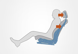Při nárazu do zadní části vozu hrají sedadla při ochraně cestujících extrémně důležitou roli. Standardní přední sedadla ve vozech Subaru jsou vybavena mechanismy, které omezují rázy třemi způsoby: (1) Aktivní hlavové opěrky udržují hlavu ve vzpřímené poloze. (2) Přetížení působící na hlavu absorbují hlavové opěrky vyrobené s dvojitou vnitřní strukturou tak, aby bylo minimalizováno riziko poranění krční páteře. (3) Celý sedák sedačky absorbuje energii, kterou vrhá cestující směrem vzad, a minimalizuje nárazovou energii přenášenou na těla cestujících. Materiály absorbující energii jsou použity také pro obložení stropu a na dalších plochách v kabině vozu, vše s cílem snížit energii působící při nárazu na hlavy cestujících.