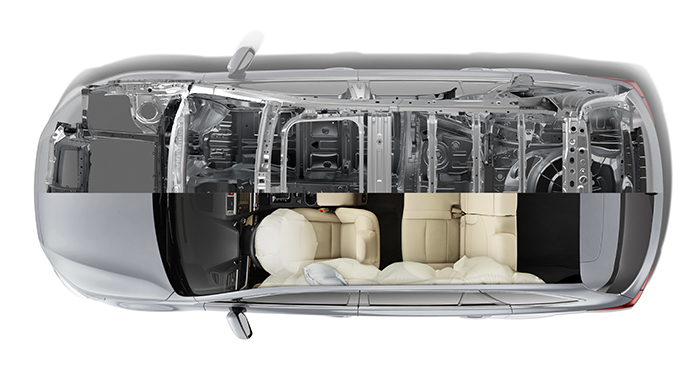 Konstrukce, která dokáže absorbovat nárazovou energii, je použita u všech ploch kolem sedačky a hlavy řidiče a spolujezdce tak, aby byla při kolizi zajištěna lepší míra ochrany.