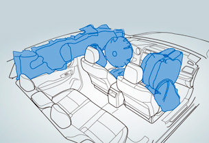 SRS airbagy řidiče a spolujezdce spolupracují s bezpečnostními pásy. Kompaktně složené airbagy jsou uloženy ve volantu a palubní desce a v okamžiku nárazu se okamžitě nafouknou v záchytný polštář. Fungují jako dodatečná ochrana cestujících.