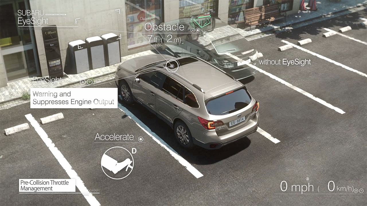 EyeSight změnil koncept tradičního tempomatu. Stereo kamery spolupracují s motorem, převodovkou a brzdovým systémem a starají se o to, že si vůz udržuje přednastavenou vzdálenost od vozu jedoucího vpředu. Systém se také mimořádně hodí na dlouhé cesty nebo do hustého provozu s popojíždějícími kolonami.