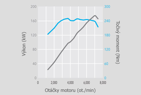 MAX. VÝKON: 172 kW (234 k) při 7000 ot./min