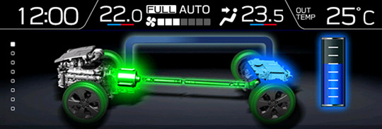 Systém SUBARU e-BOXER rozděluje hnací sílu mezi zážehový motor 2,0 litru s přímým vstřikem a elektromotor tak, aby se při co největší hospodárnosti přizpůsobil aktuálním jízdním podmínkám. Ve spojení s převodovkou Lineatronic ohromuje také minimální hlučností, mimořádnou jemností a podmanivou dynamikou. Samozřejmostí je proto komfort spojený se svěžím projevem. Motor je spolu s akumulátorem umístěn v podélné ose vozu, což přispívá nejen k optimálnímu rozložení hmotnosti, ale také nízkému těžišti – to jsou ostatně typické vlastnosti pro vozy Subaru vybavené motory SUBARU BOXER
