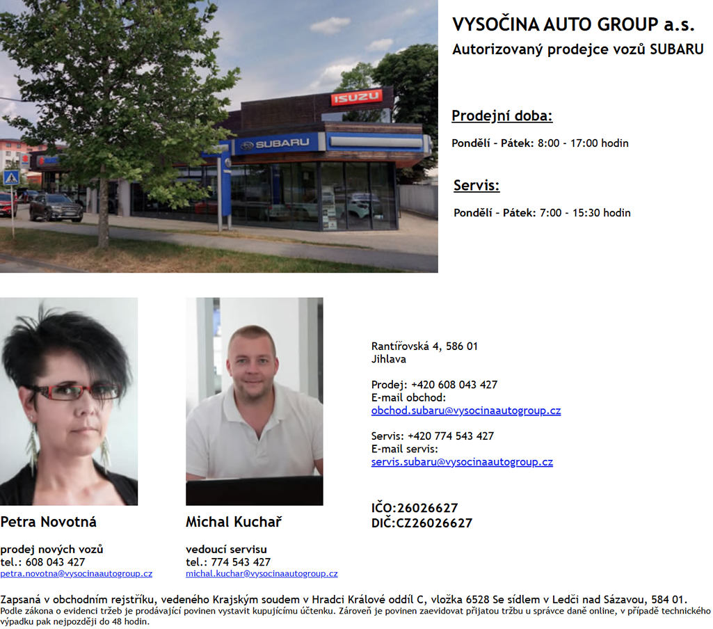Máte-li zájem o práci u Subaru, ozvěte se nám! Pošlete nám rovnou svůj životopis spolu s motivačním dopisem, a to buď elektronicky na E-mail: info@subaru.cz, nebo poštou: SUBARU ČR, s.r.o., Pekařská 5, 155 00, Praha 5.