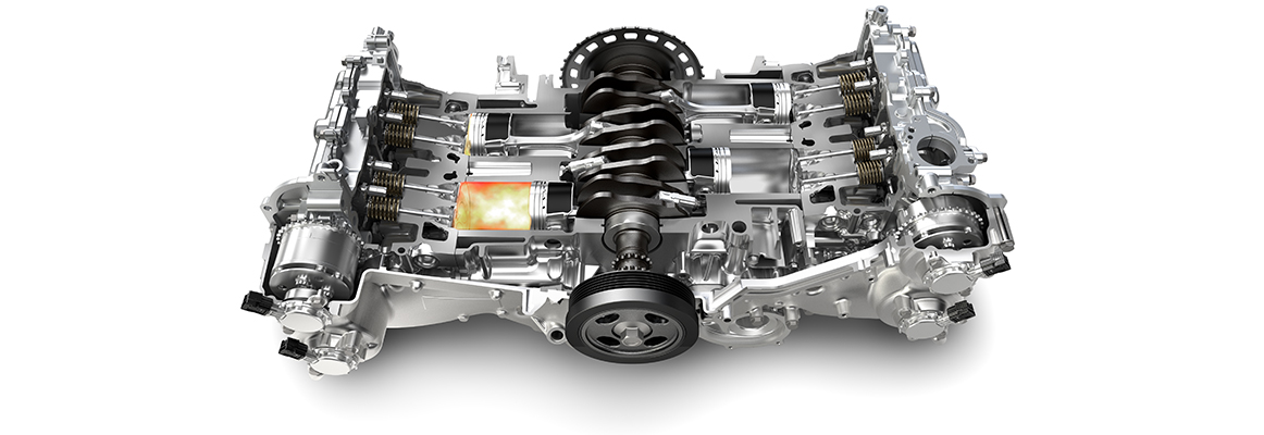 Všechny těžké pohyblivé komponenty v plochém motoru s protiběžnými písty – ojnice, písty, vačkové hřídele a rozvodový mechanizmus – jsou v jedné rovině a současně co nejníže. Modely SUBARU mají oproti jiným vozům s řadovými nebo vidlicovými motory výrazně nižší těžiště, což přináší mnoho výhod v otázkách ovladatelnosti i jízdních schopností.