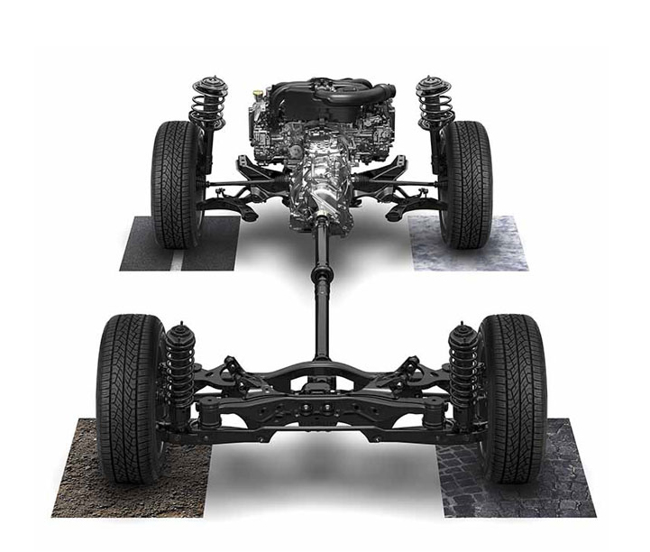 Systém pohonu všech kol pro vozy s manuální převodovkou s vyrovnaným rozložením hnací síly tvoří mezinápravový diferenciál s viskózní spojkou. Za normálních podmínek je točivý moment rozdělován v poměru 50:50. Tím maximalizuje trakci a zajišťuje stabilní jízdní vlastnosti. V případě, že se kola přední nebo zadní nápravy protočí, nebo když se rychlost...