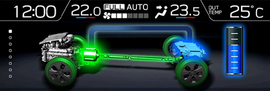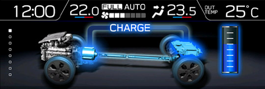 Při vyšších rychlostech, kdy je účinnost motoru dobrá, se elektromotor zastaví a výkon je dodáván pouze z motoru pro sportovní a silný zážitek z jízdy. V případě potřeby se motor regeneruje, aby se baterie dobila.