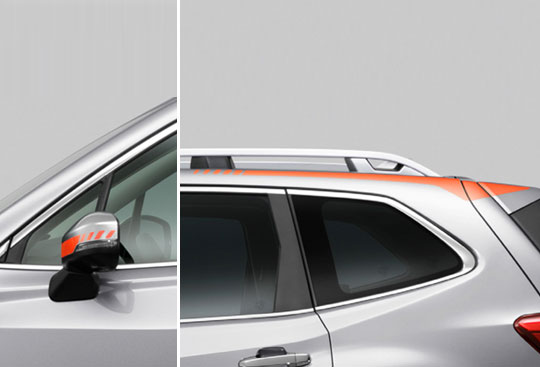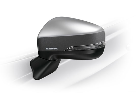 Polep krytu zpětných zrcátek s logem SUBARU.